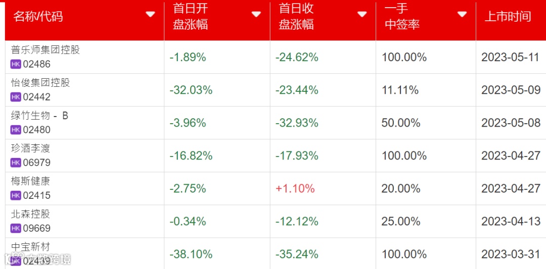 今天同时公布中签结果都另一个票,宏信建发(09930.HK)的配售结果也差不多,下限4.52港元定价,公开获0.12倍超额认购,国配获1.47倍,不回拨;未超额分配,绿鞋失效。市场认购热情大家都很冷。