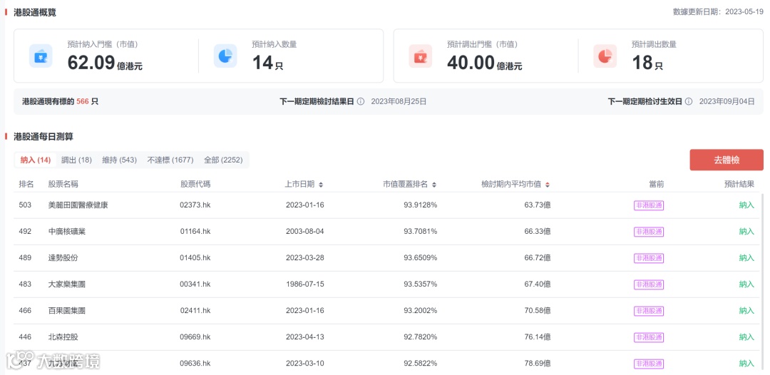 恒生综指每半年进行一次检讨,检讨的时间点为每年的6月30日和12月31日,现在快5月30号了,离6月30日只差一个月。你看一看上一次进入港股通的这些新股上市的时间测的多好,有些甚至刚好压住在12月31号之前上市,市值和流动性只要满足要求,就可以直接进恒生综指,从而纳入港股通。星空华文12月29日上市、思派健康和业聚医疗12月23日上市、3D MEDICINES-B、高视医疗、这些都是压在六七十亿门槛左右,冲着港股通来的,都赶上了12月31日恒指检讨之前。