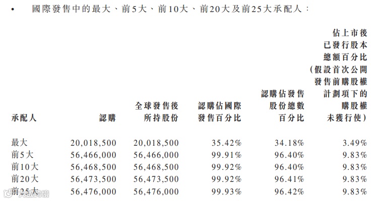易点云国际配售总共106个人,有102人中签五手或以下,仅仅是4人获配五手以上。前25大承配人还都拿走了99.93%国际发售的货。