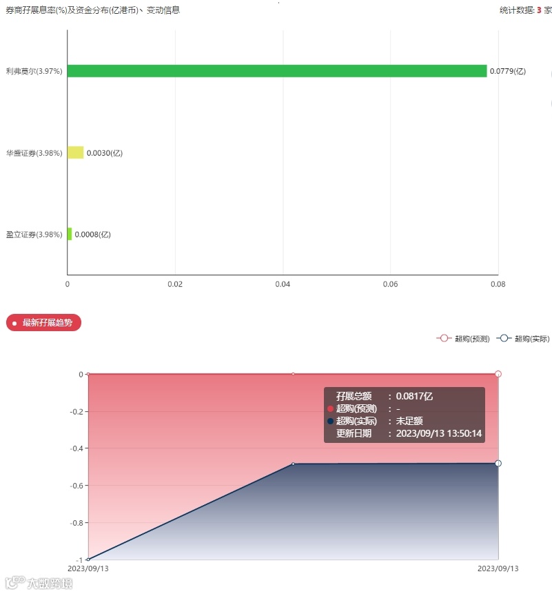 关于中签率方面,如果孖展不足额,按照3000人来参与预估一下,一手中签率在85%左右。