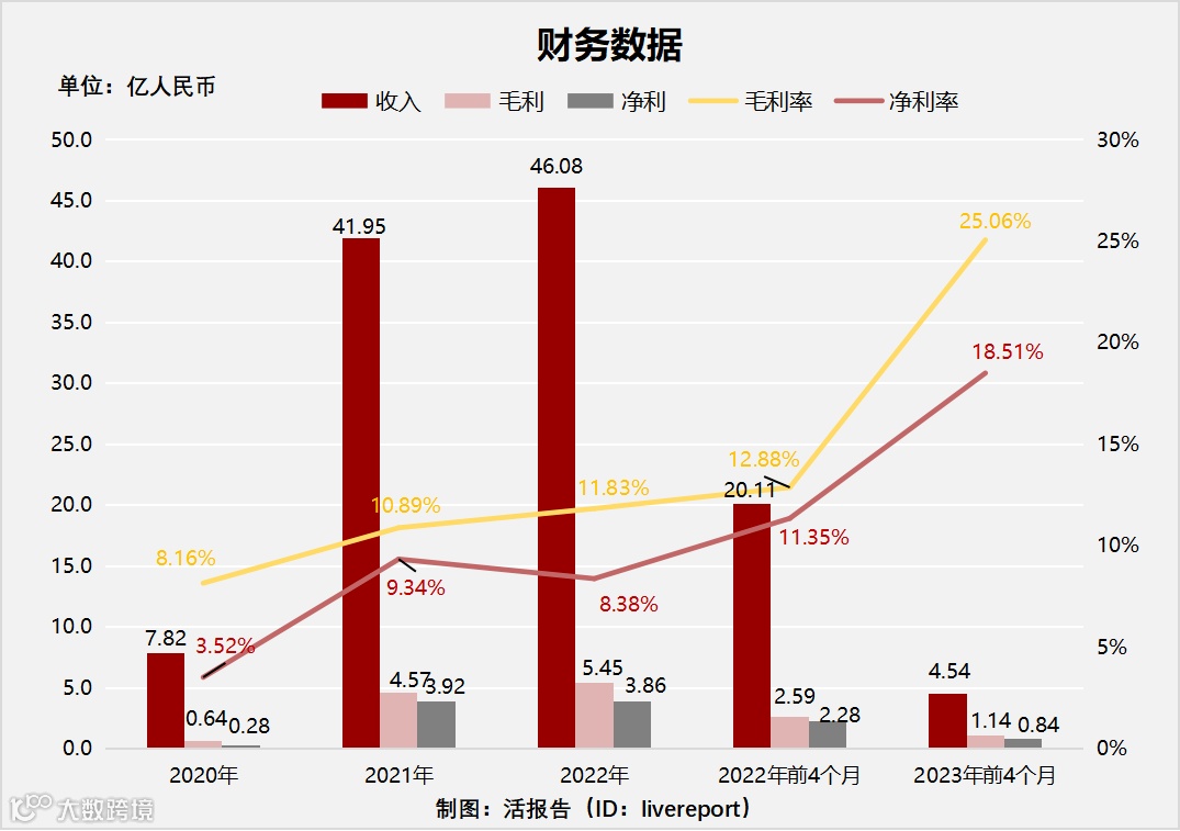 收入分别约为人民币7.82亿元、41.95亿元、46.08亿元、20.11亿元及4.54亿元,年复合增长率为142.82%;