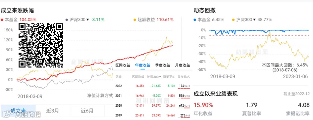 就是至少凑够100万能买得起一款(套利/量化/对冲/cta/可转债/复合/等策略)长期历史回撤小收益还不错的私募,如下图这个就能实现过去连续几年每年十几个点年化收益,这个真的就足够了,重点是连续几年历史回撤都很小了啊!