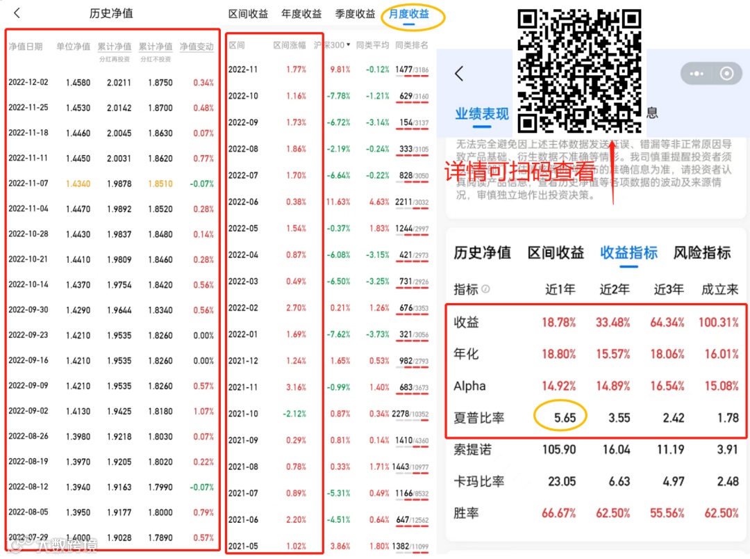 这种比散户炒股的厉害之处在于无论牛市熊市,夏普都能做到5以上!历史回撤不到3%的。并且能连续几年都表现如此,几乎都能实现每月正收益,每周收益胜率挺好。