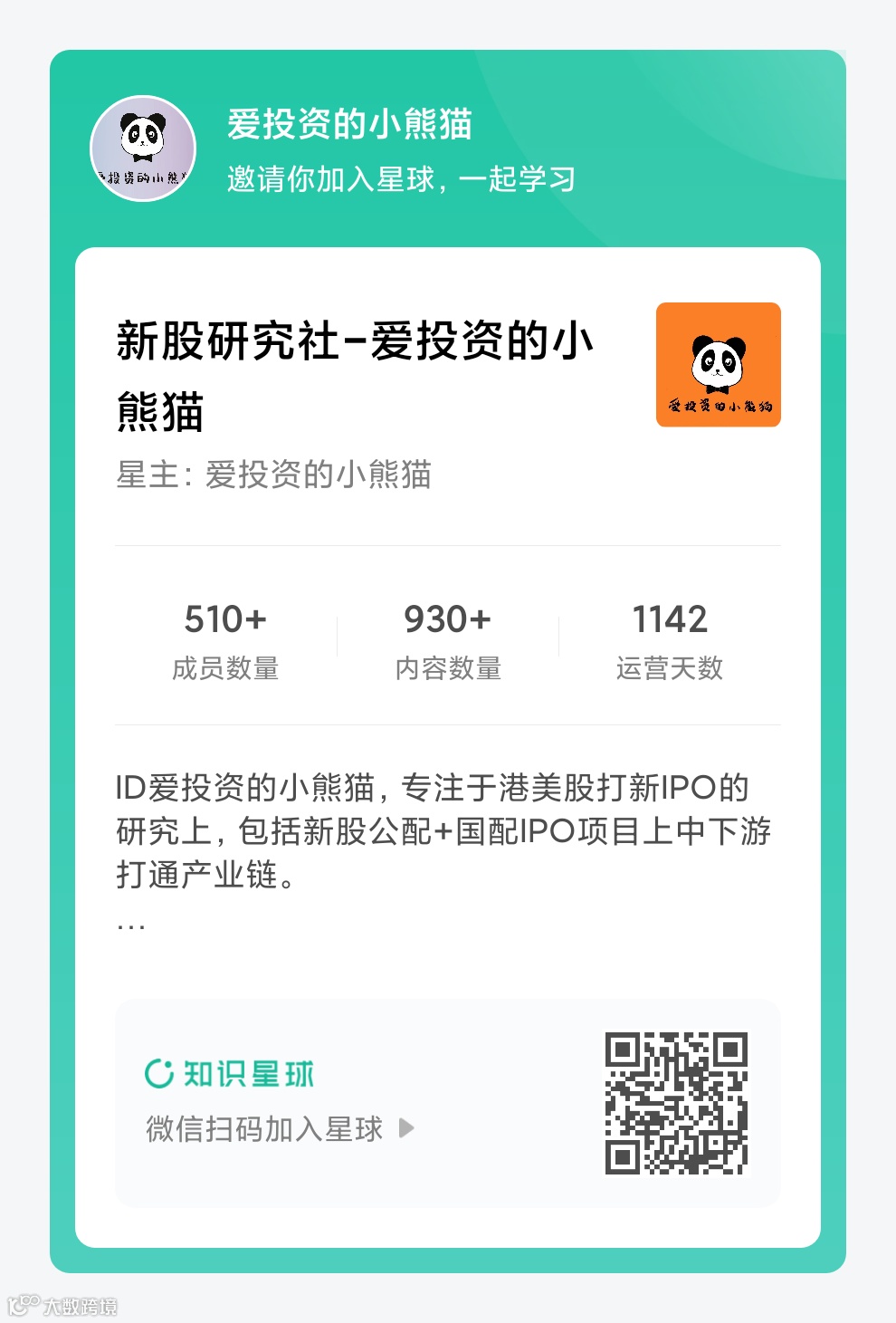 也欢迎关注我们“爱投资的小熊猫”,深耕于港股打新领域国配和公配。如果方便的话也欢迎自我介绍一下或者赐予名片。