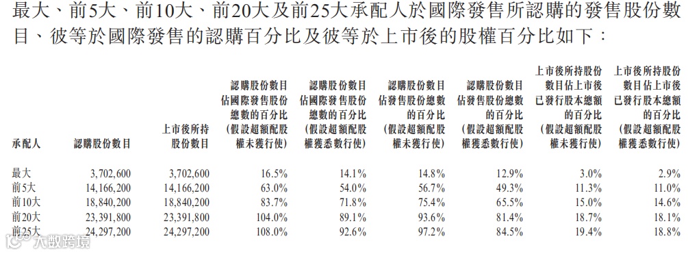 普乐师集团控股国际配售总共143个人,有112人中签五手或以下,其中71人中签一手,41人中签二到五手,仅仅是31人获配五手以上。即便是这样,前25大承配人还都拿走了92.60%国际发售的货。