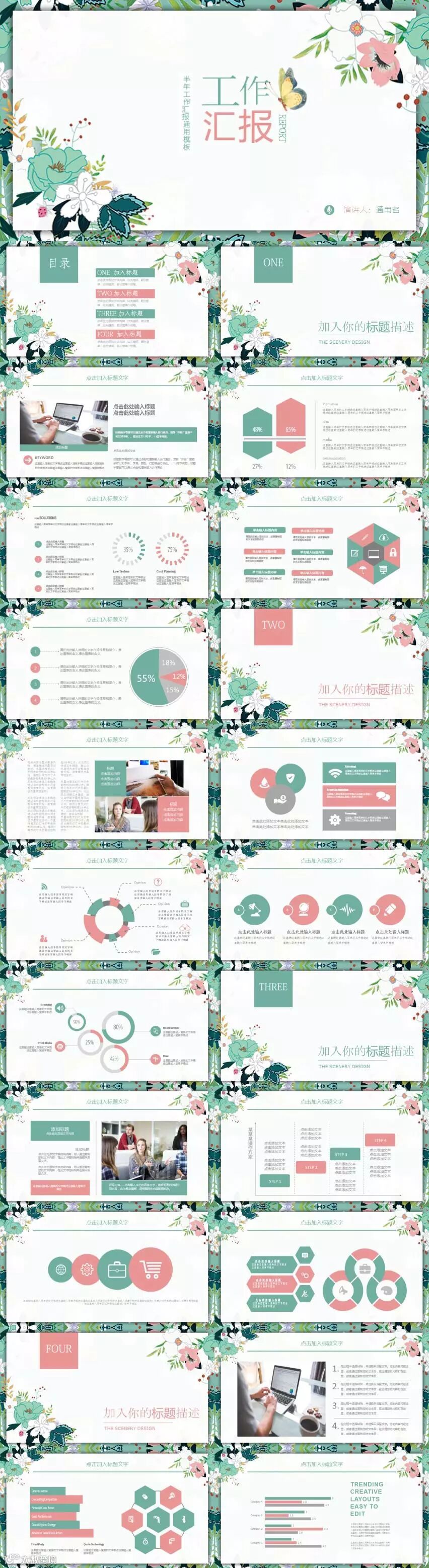 免费 | 绿色清新插画工作汇报通用PPT模板