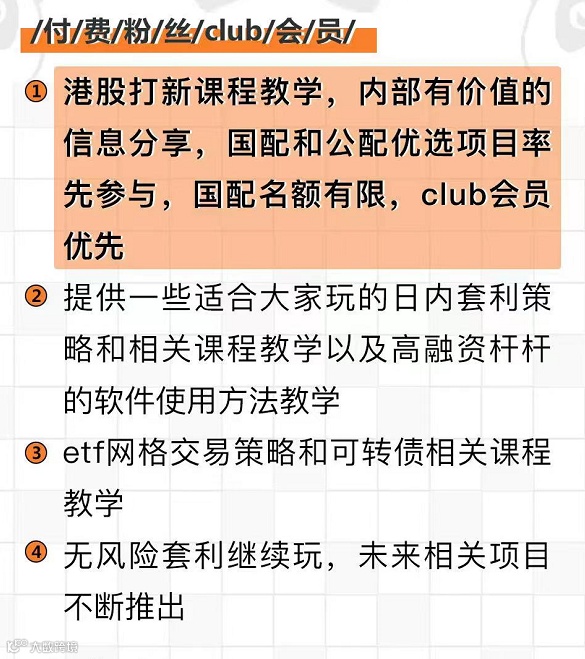 另外除了港股打新项目,日内交易项目,网格交易项目,可转债项目等也都在club里持续进行中!付费后可以私聊我们进群。