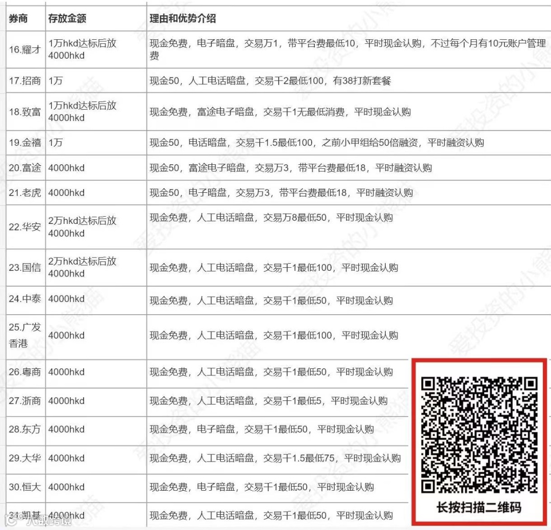 当前港股新股是该怎么打?2022年新股募资额最大的前11名有6个上了跌幅榜前11,涨幅前10全部是募资小的票!后面大家可以启动一些小甲组账户开始打新了,弄一些几个有优势的融资户+堆现金免费账户,开搞!这些目前打新有优势的券商介绍如下图所示: