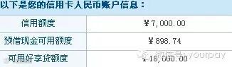 操作过程:先在卡里面存上固定额度的一倍,等第2天入账,在1.25黄金酒店机器操作7到8笔(刷1.25的机器是关键!),刷出原来额度百分之三十五,再存入卡原额度,再换0,78机器15笔,再存入卡原额度到账后0.78刷出百分之三十,0.38机器刷出百分之四十,沃尔玛购物卡3千。再存入卡原额度冰冻。我操作时间是一周时间,离账单日刚好9天。出账单第2天,收到好享贷邀请,直接网上激活额度18000.