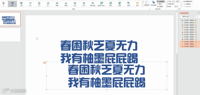 我们将这个文本框复制,粘贴两份。我们发现动画也被原封不动地复制下来了。