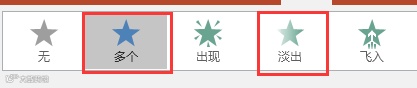 很简单,只需要选中这三个动画,直接点击动画选项中的[淡出]就可以了,我们会发现动画从[多个]切换成了[淡出]。