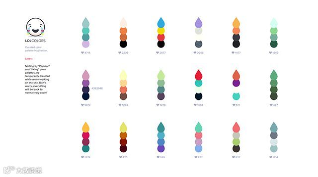 LOL Colors上的每个配色方案都配有网友的点赞数,你可以直接看到哪个方案更受欢迎,让你选择更轻松。