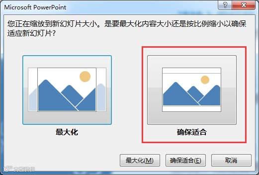 当你做完一整个PPT,却被告知要修改PPT的尺寸时,选择“确保适合”可以大大减轻你修改的工作量。