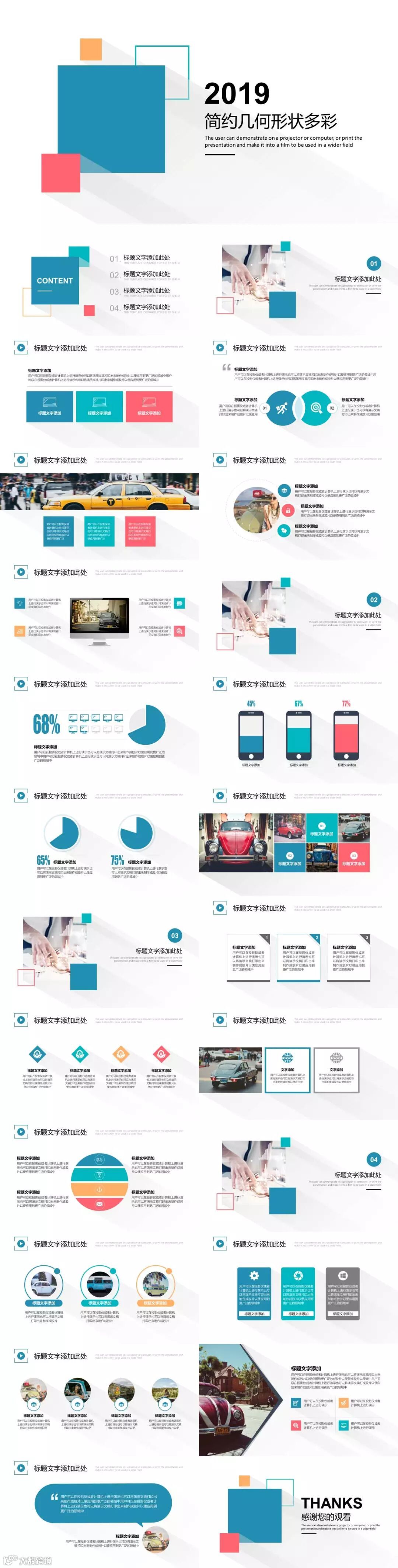 第一款~【简约几何形状多彩几何PPT幻灯片模板】