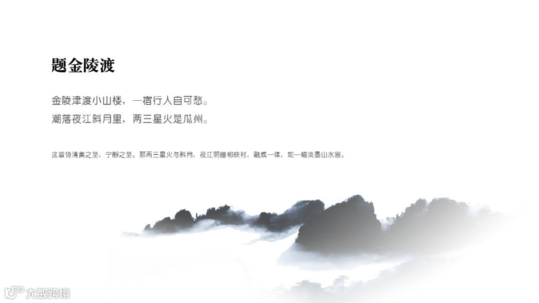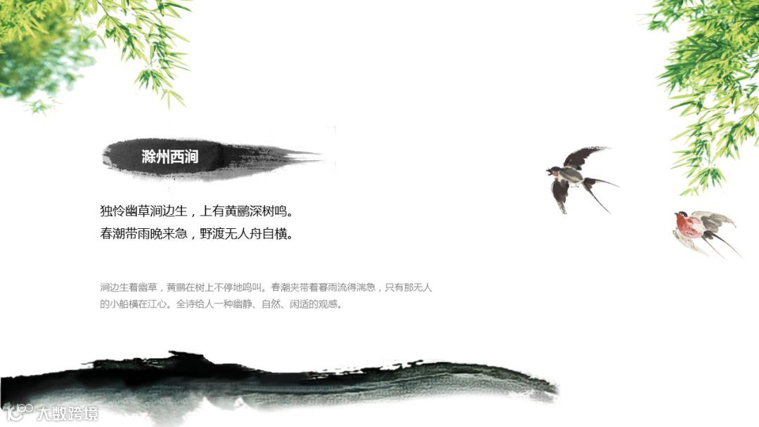 这首诗为读者展现了一幅色彩素雅、格调清新、意境优美的水墨山水画。以形写意,轻笔淡墨,又融情于景,情绪乐观,给人以美的享受。