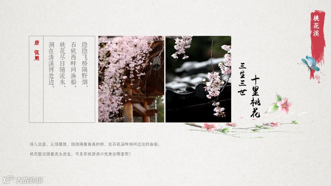 诗人远望,云烟朦胧,隐隐隔着高高的桥,在石矶溪畔询问过往的渔船。桃花整日随着流水流走,可是那桃源洞口究竟在哪里呢?