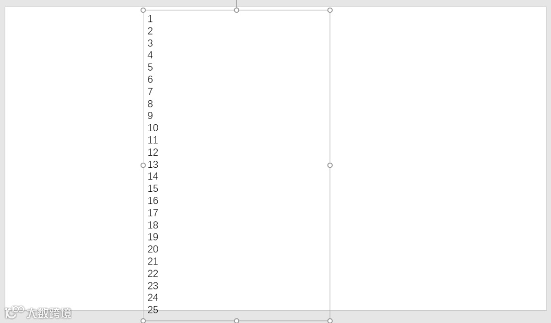 我们先输入1—25数字,并按每行一个数字的方式排列。