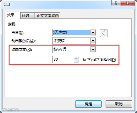 和进入动画一样,设置动画文本为“按字/词”,延迟为30%。