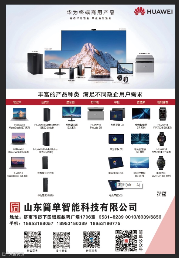 山东简单智能是华为商用授权分销商、360数字安全山东总经销,信创一站式增值服务商,主营华为擎云商用电脑、平板、IdeaHub大屏、视频会议、服务器、信创、软件方案,是华为、360、麒麟、统信、铠大师、WPS、永中、福昕鲲鹏等厂家授权分销商。