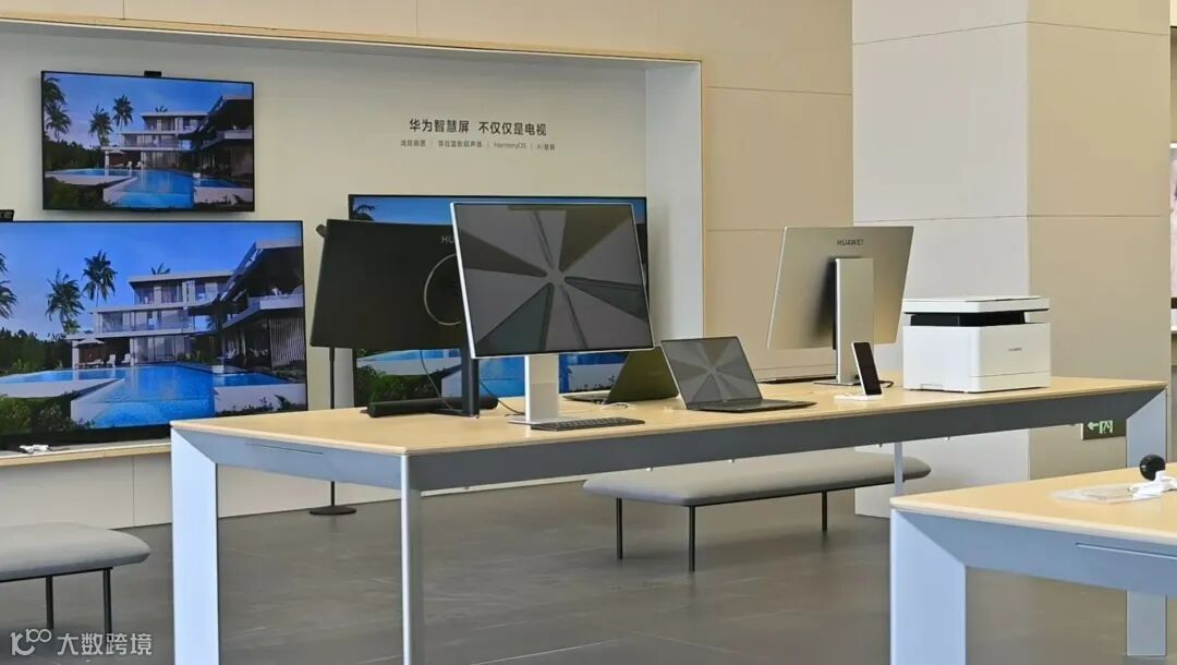 智慧办公区域内陈列着笔记本电脑、平板、手机、打印机等,打造设备相互协同,生态相互融合,数据无缝流转的智慧办公体验。