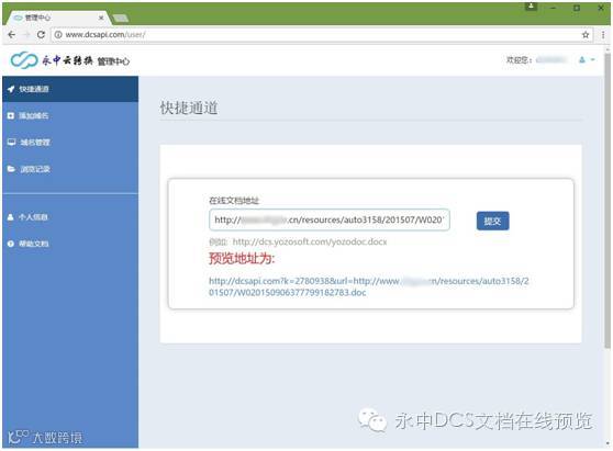 赶紧搜索,进入云转换页面,看了一下使用教程,基本弄明白了,原来使用永中云转换很简单:第一步:注册、登陆;第二步:添加要预览网站的域名;第三步:进行预览URL拼装。