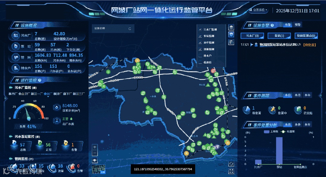 中共中央办公厅、国务院办公厅印发的《关于推进新型城市基础设施建设打造韧性城市的意见》明确提出,要强化城市防洪排涝设施建设,提升水务系统智能化管控水平。排水厂站网监管平台的构建,正是响应政策要求、破解城市水务治理难题的关键举措,通过整合“厂、站、网、河”全要素数据,实现水务治理从“被动应对”向“主动预判”、从“经验决策”向“数据驱动”的转型。