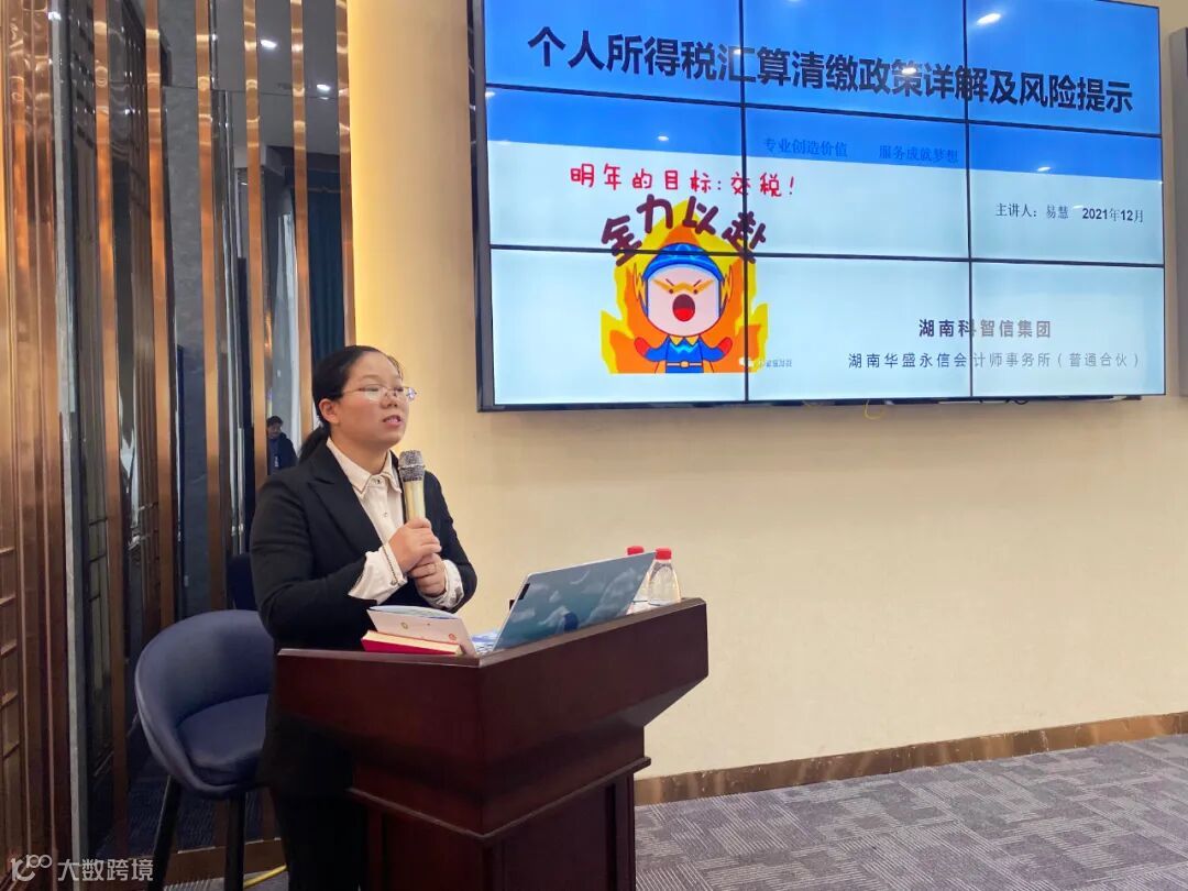 主题分享环节易慧老师就“新个税及条例的政策详解、专项附加扣除的要点与规则、综合所得预扣预缴的申报方法、年终奖的详细政策与规则”等内容,并通过案例讲解,深入分析新个税的重要性。