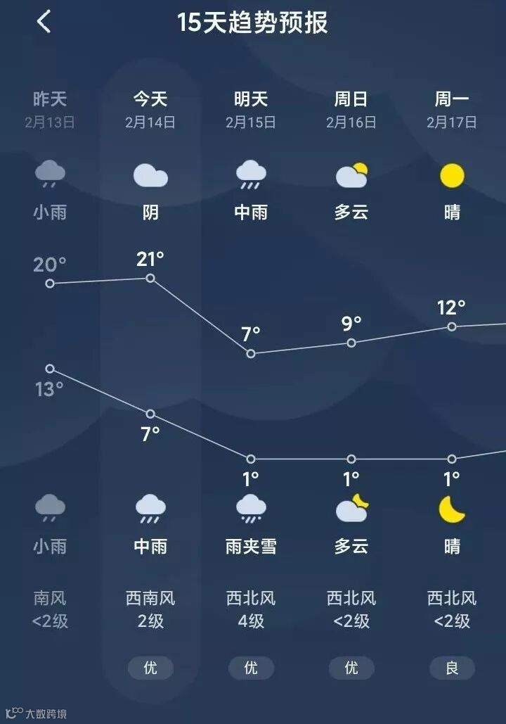 今天还有21度明天就在1度徘徊