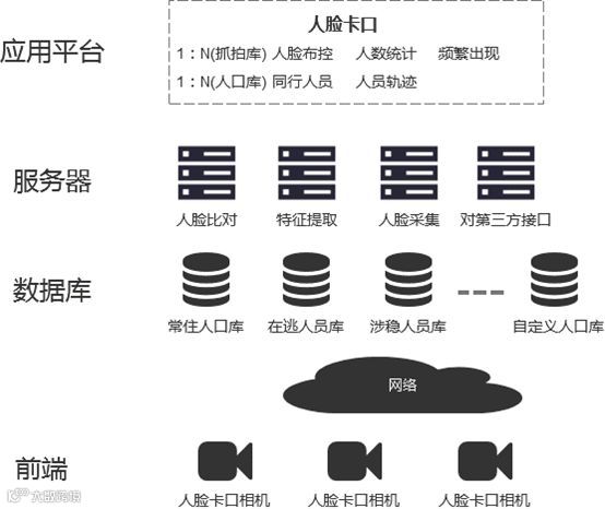 针对一些人员密集区域(如车站、地铁站、机场、社区等)的关键出入口、通道等卡口位置布置人员卡口,后端对重点关注人员、打防控人员进行黑名单布控,通过实时视频流比对布控黑名单,实现人脸比对识别。