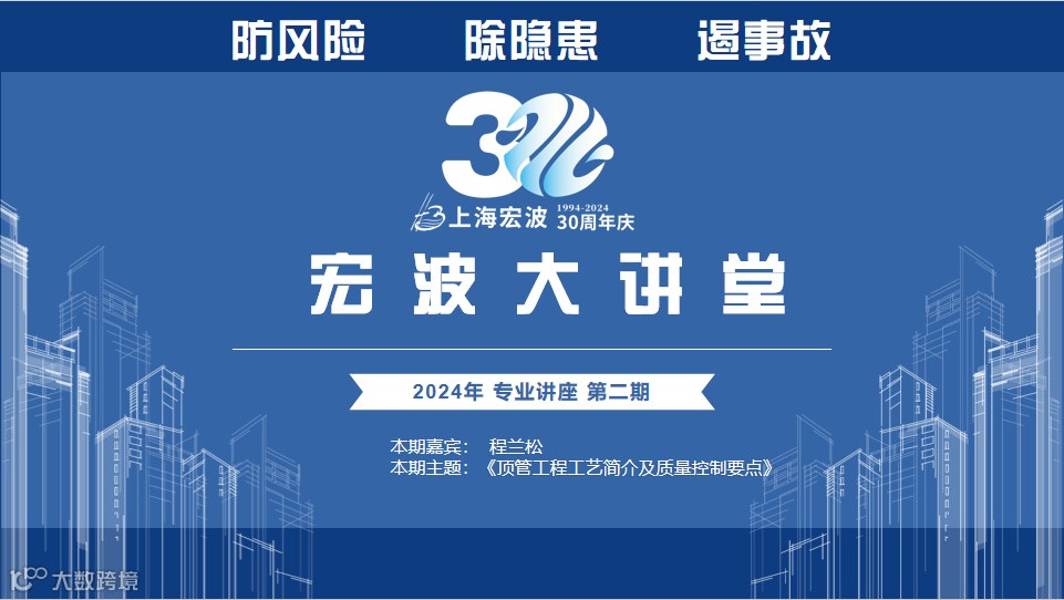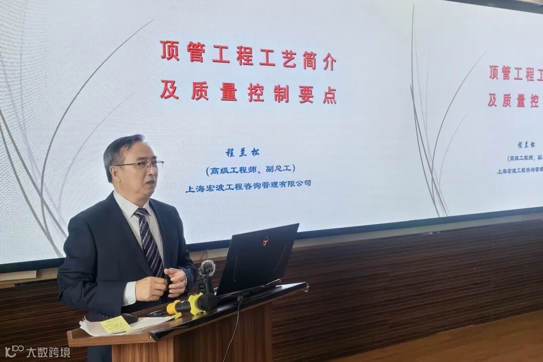 本次培训主题为《顶管工程工艺简介及质量控制要点》,由全过程咨询板块第二事业部副总经理程兰松授课。程老师从事监理工作二十余年,本期课程通过9个部分进行讲解:1.顶管施工主要原理;2.顶管施工主要设备及控制事项;3.顶管施工工艺流程图及现场布置;4.顶管设备安装及管内布置;5.顶管进、出洞技术措施;6.顶管施工中测量纠偏控制措施;7.顶管测量控制;8.触变泥浆减阻及管道通风;9.顶管案例介绍。