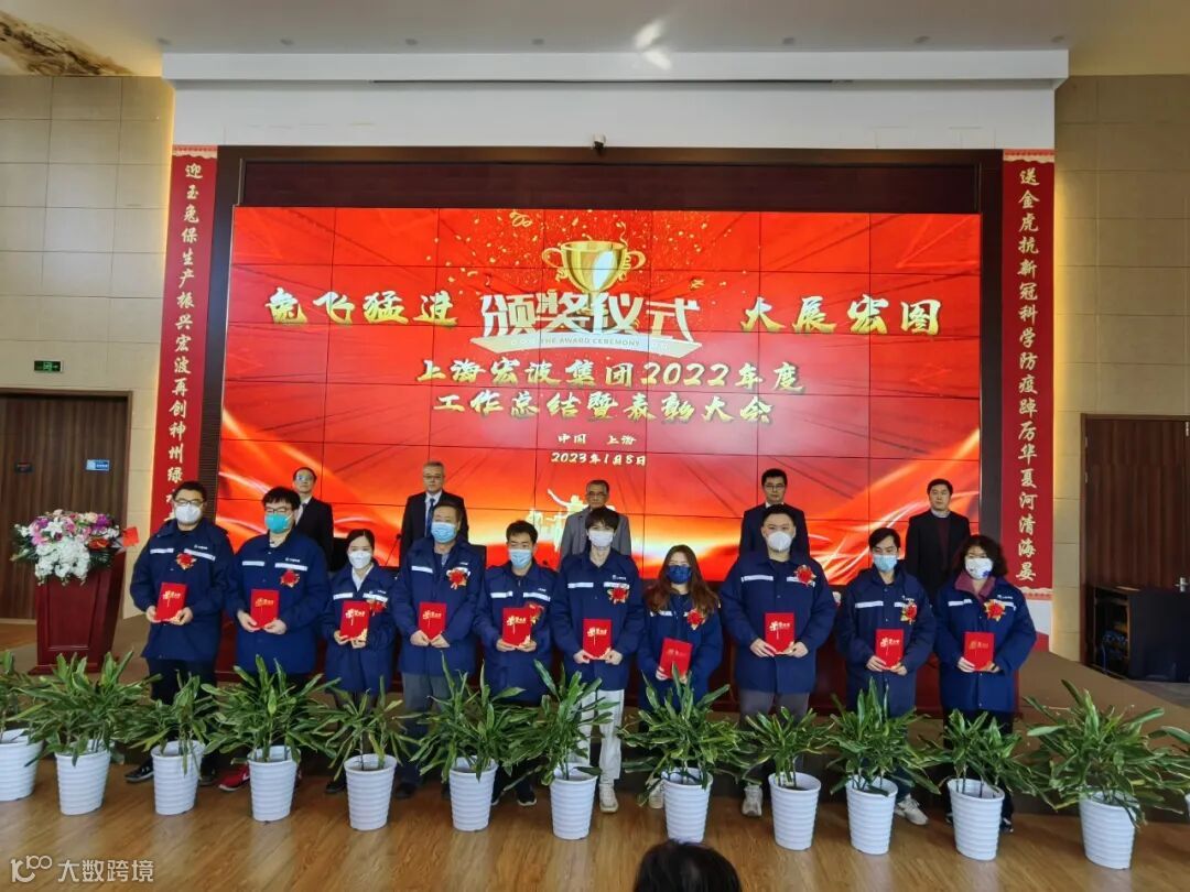 随后表彰了上海宏波集团2022年度先进团队以及先进个人,希望受表彰的集体和个人珍惜荣誉,再创佳绩;希望集团公司各部门及全体员工在新的一年中认真学习,团结一致,扎实工作,为集团做出新的贡献。