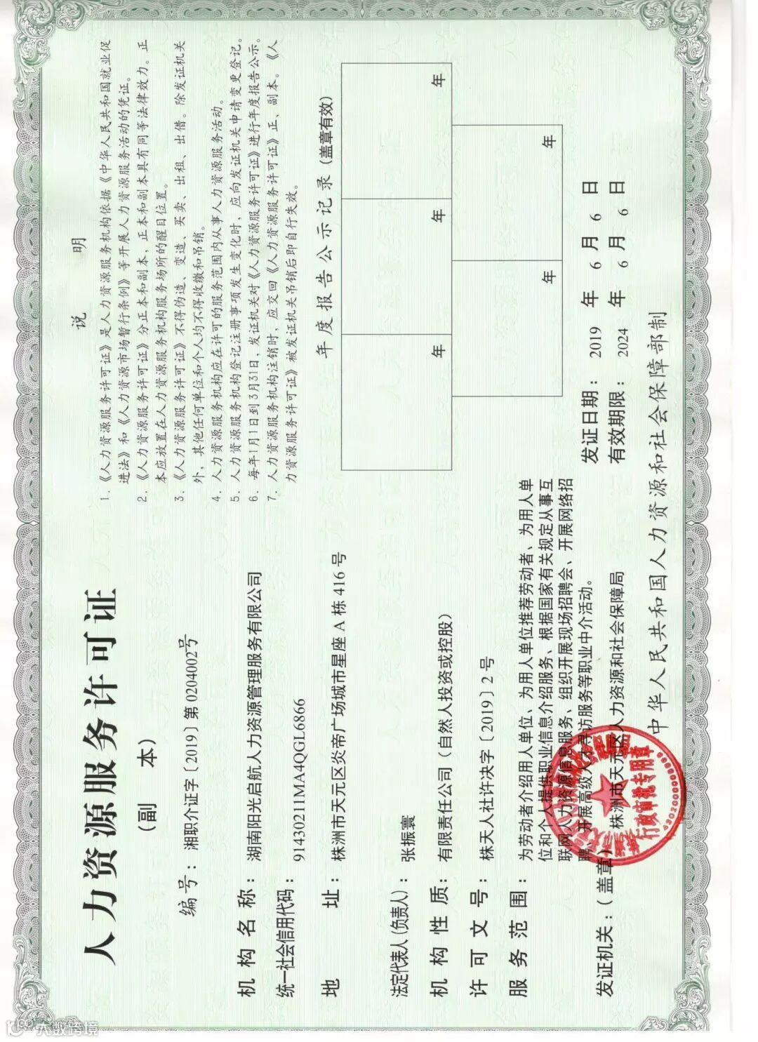 湖南阳光启航人力资源管理服务有限公司是经株洲市人社局、工商行政管理局批准的一家专业人力资源服务机构。