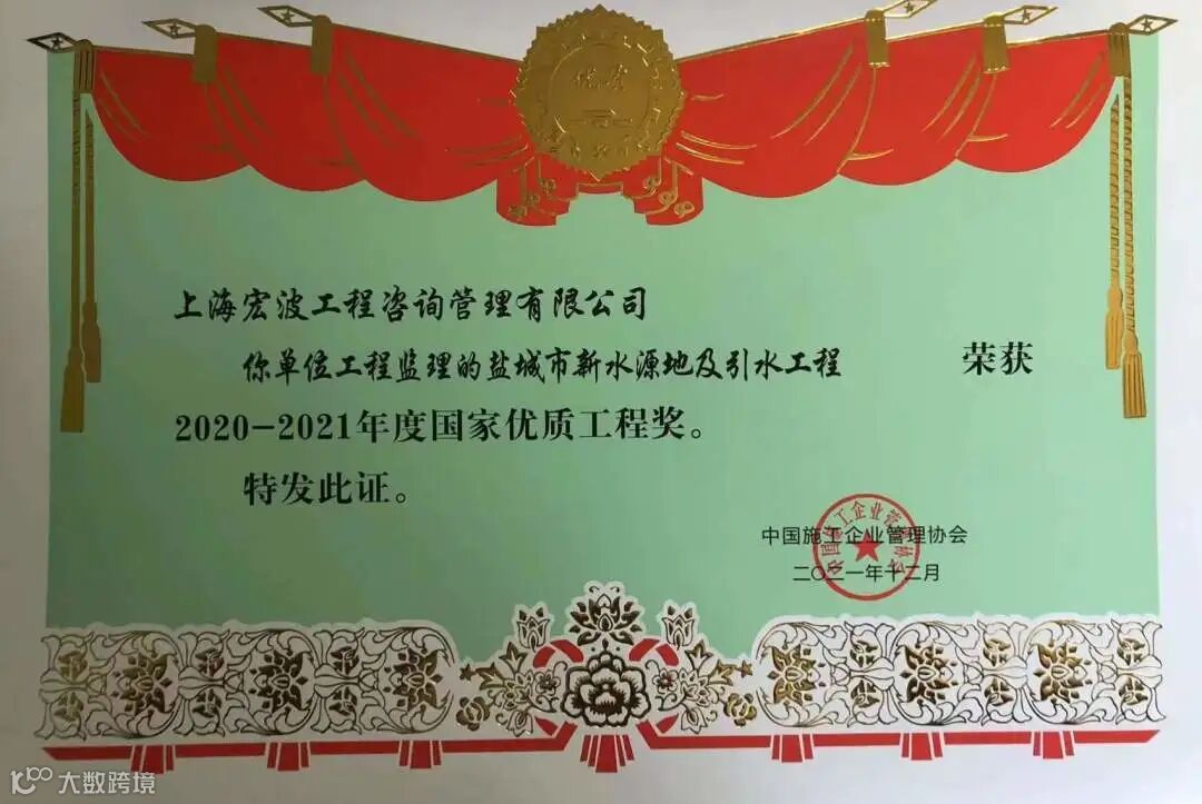 近日,中国施工企业管理协会发布《关于表彰2020-2021年度国家优质工程奖的决定》,宏波集团参建的武汉市轨道交通6号线—期工程、黄浦江水源地工程(连通管工程和金泽水库工程)、盐城市新水源地及引水工程一标段、广钢环保迁建湛江钢铁基地厂东生产配套工程喜获国家优质工程奖。