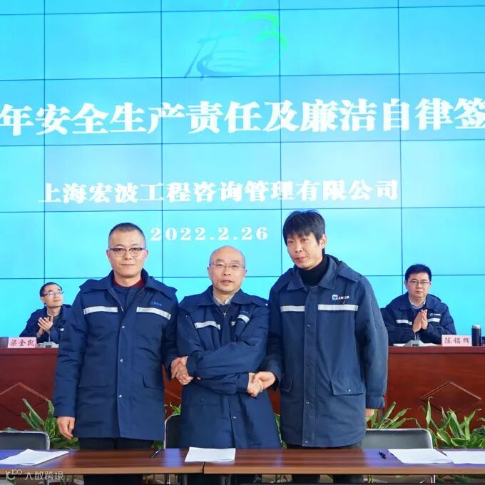 2月28日,上海宏波集团全过程咨询公司召开月度会,会上集团总裁、企业法人李松与部门负责人、项目负责人进行安全生产责任及廉洁自律签约。会议分现场和直播的方式进行。