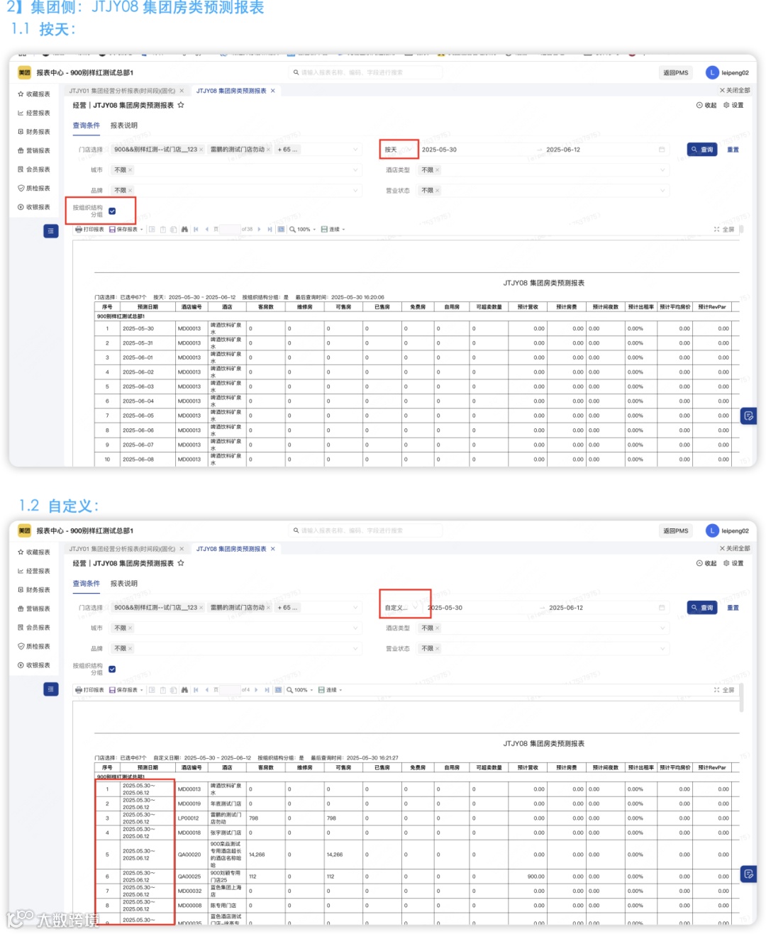 新增门店及集团房类预测报表