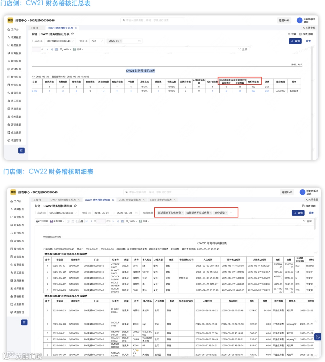“当前前台结账报表按操作人和班次分多行显示同一房间消费记录,财务对账时得自己加来加去,太耽误时间了!”