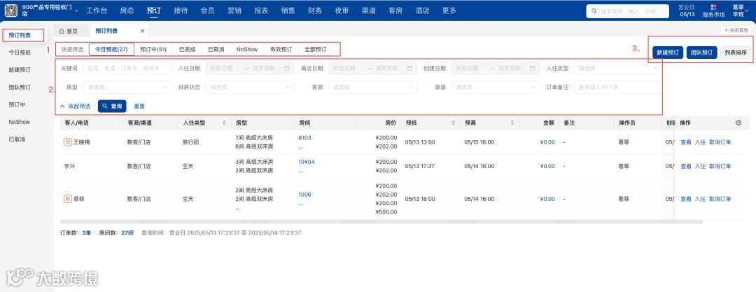 “客人手滑选错日期,今日预抵查不到订单,急得跳脚还得手动切页面二次筛选”
