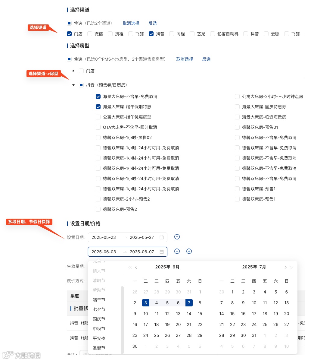 “节假日调价功能薄弱,无法满足多段日期、百分比调价等业务场景需求”