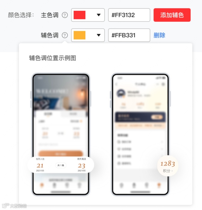 辅色调:即页面文字的颜色,如价格、日期、积分等文字内容