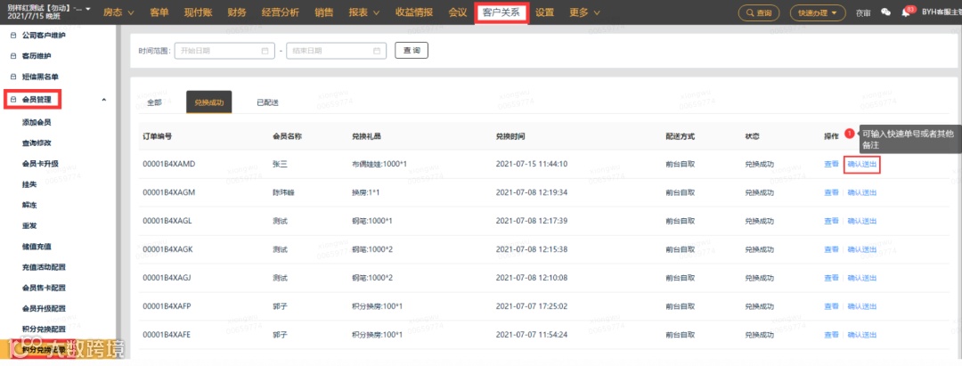 会员积分兑换之后,如何记录客人已经领取到礼品了呢?
