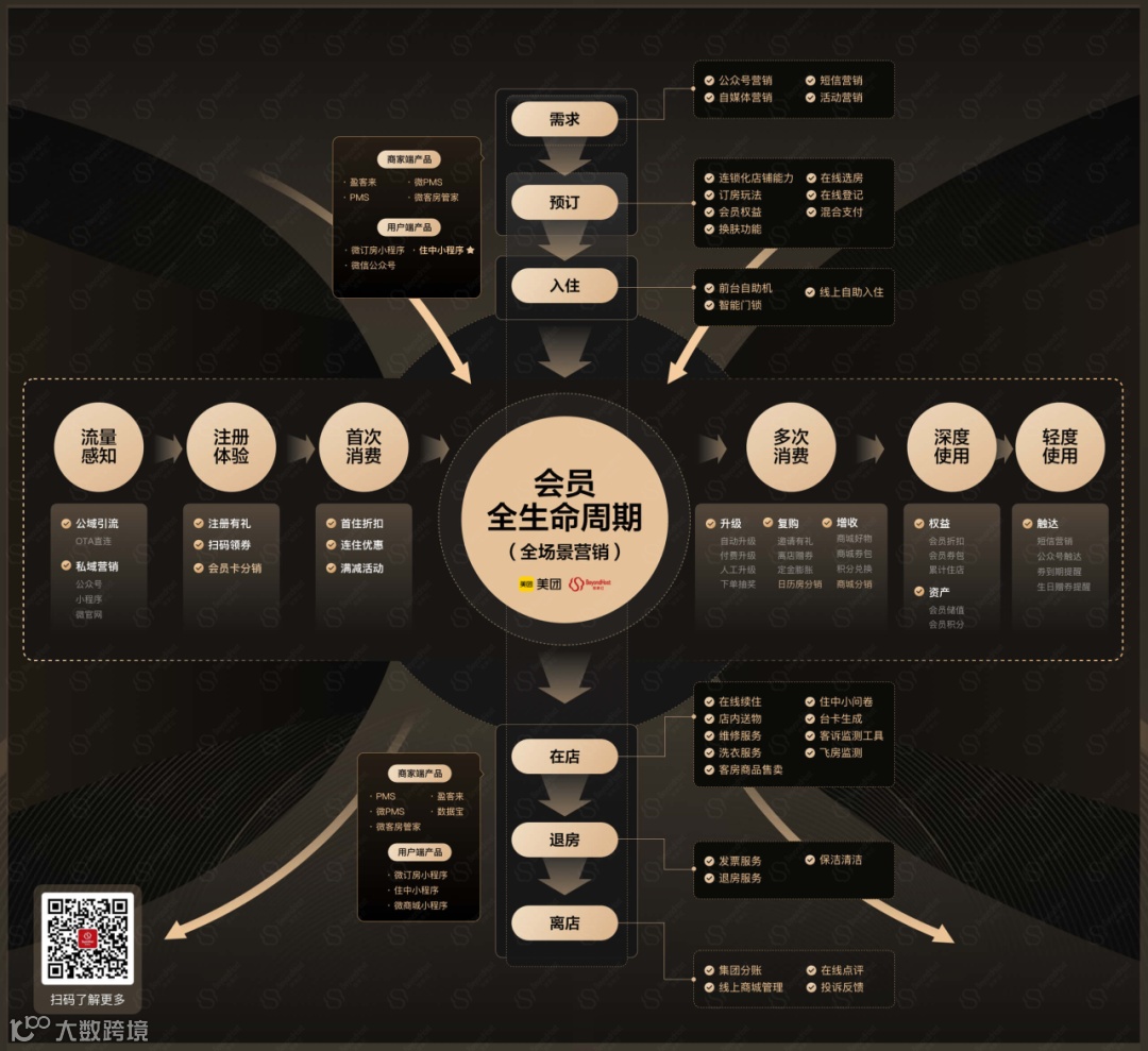 此外,微信私域流量的搭建对于酒店的竞争力至关重要,小编用一张图带你了解酒店会员全场景营销,帮您寻找有效的方法来提升品牌影响力和客户忠诚度,同时更好地管理并挖掘您的客户群体,以实现收益的最大化。