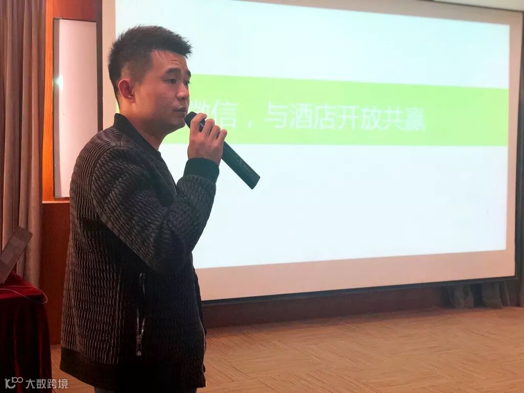 旅悦集团西北大区总监张特分享的话题为《微信,与酒店开放共赢》。张总通过微信服务、会员运营、订房渠道的关联,向与会嘉宾展示了微信如何助力酒店搭建O2O新生态。