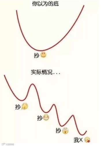 今天的快手,在昨天跌去15%的情况下,今天又继续跌了4.6%,群里不少人都说抄底,这个票的底到底在哪里?不知道!快手也都跌了大半年了,抄底的都和下面这个图里显示的一模一样。