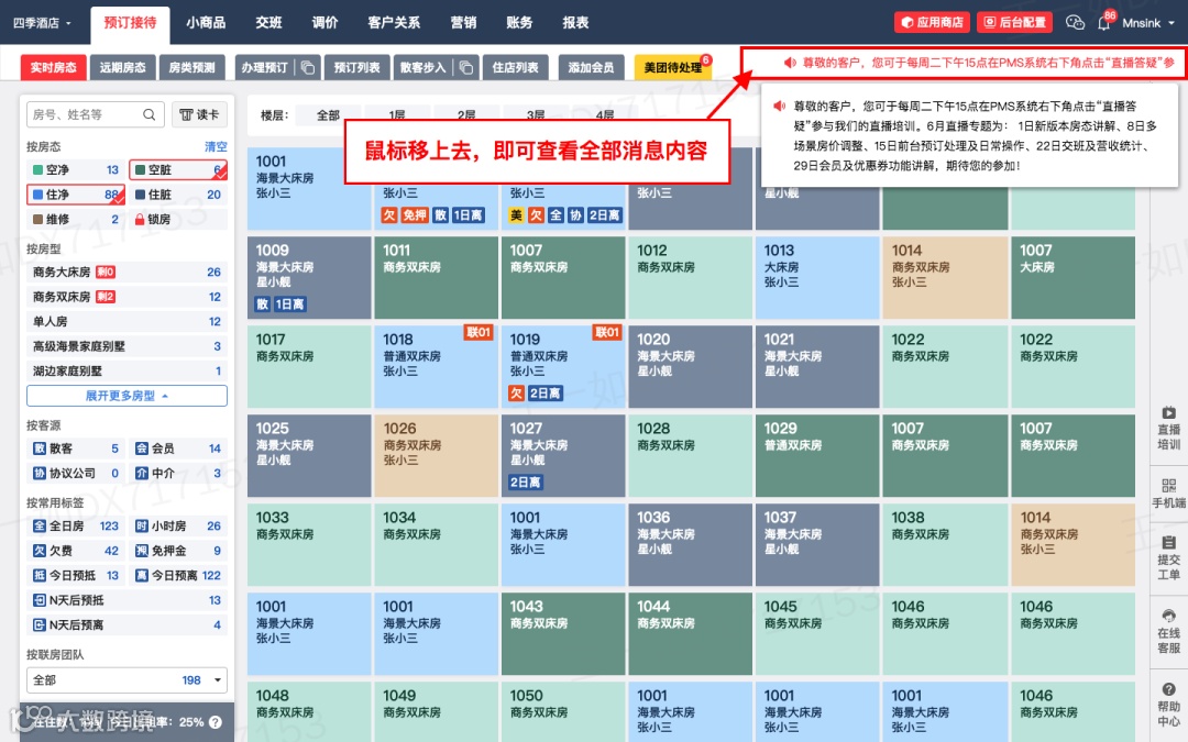 在您办理多房间修改房态的时候,是否会多选或漏选房间呢?本次我们对这类场景进行了功能优化。