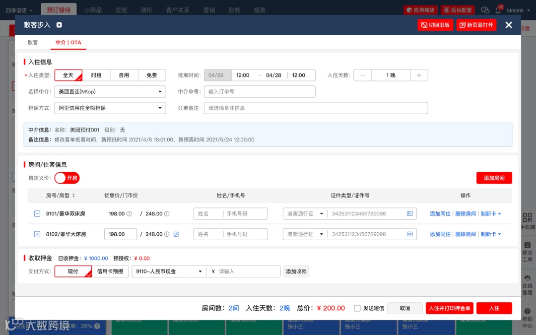 3.独立录入OTA订单。将高频的操作流程独立出来。