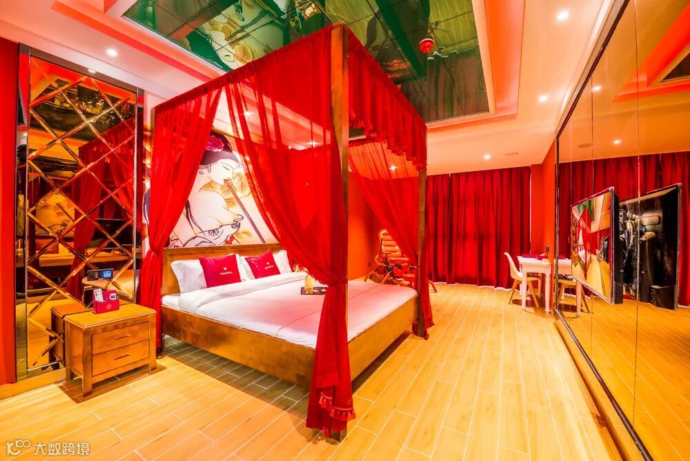 枫林晚发源于三亚,定位情侣主题酒店,品牌名称源自杜牧《山行》——“停车坐爱枫林晚”,以极强的辨识度和感染力诠释主题酒店不一样的风情。