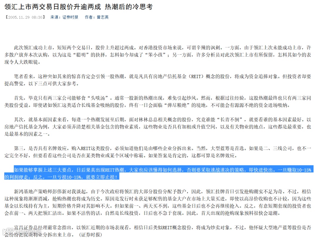 下面这个领汇就是REITs,可以参考下之前的新闻。