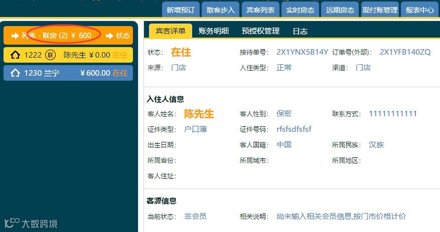 如何将新入住的房间和在住房账务关联?