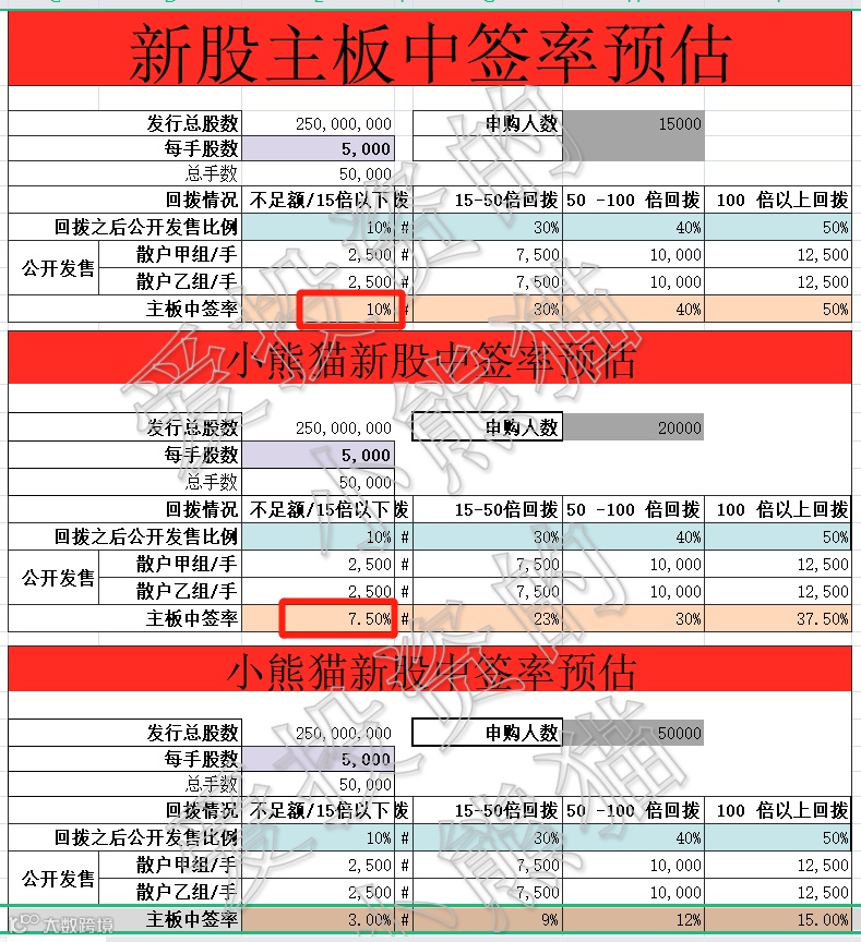 如果按照5万人参与认购,人多了大概率就回拨,大概9%左右的一手中签率;