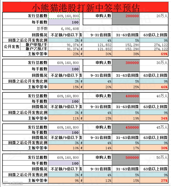 所以预估京东物流预估的一手中签率30%左右,大概100手稳中一手差不多够,这个公开配售的货量是和农夫山泉差不多的。农夫山泉是150手必中,80万人参与,预估没农夫山泉这么热,京东物流50万人参与,所以我觉得100手足够了。按照下图所示的小甲组认购方案认购参与即可。